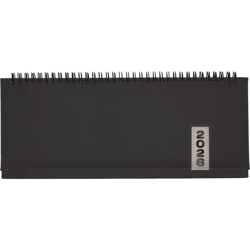 Планинг дат. 2026г, 310*145мм 64л., Vertical черный, тв. обложка, кожзам, евроспираль, 70г/м2