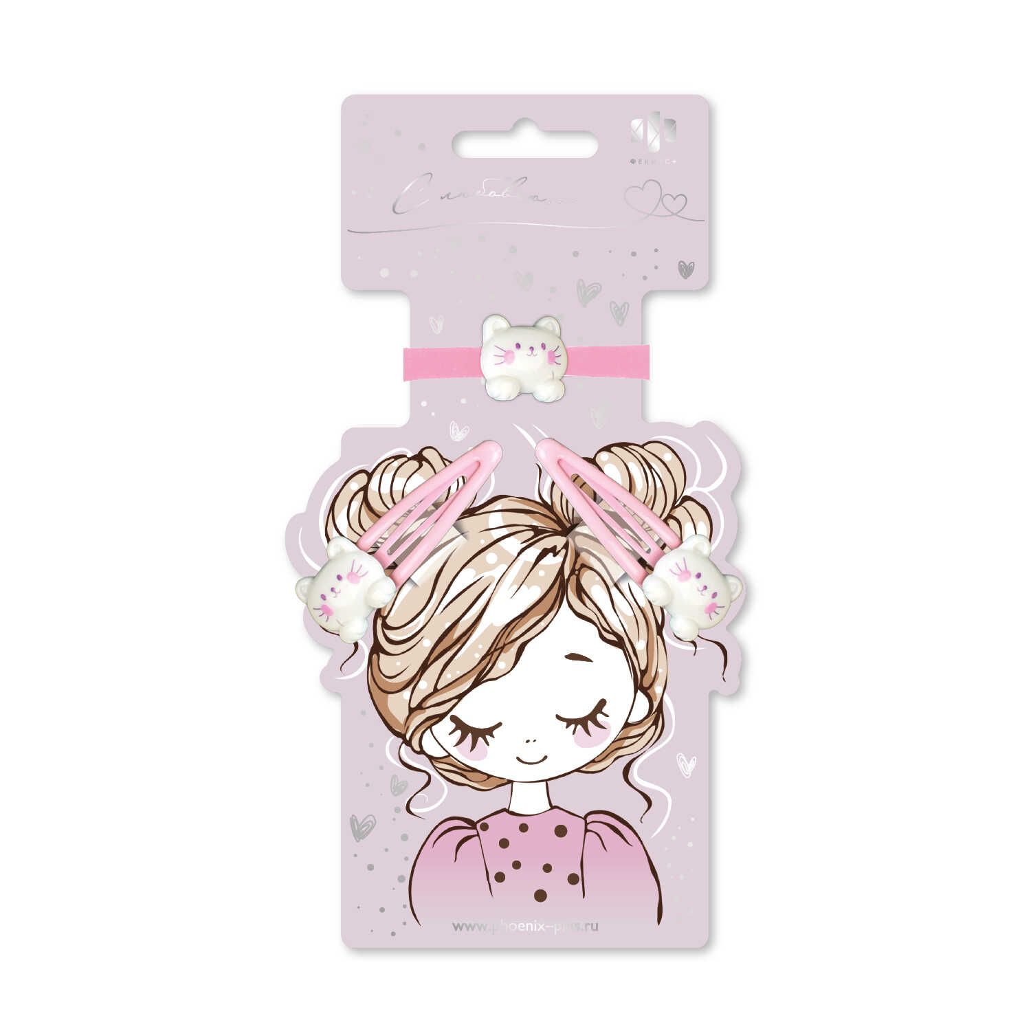 Набор аксессуаров для волос "Феникс+. Котики" 1 резинка, 2 заколки 5,5см