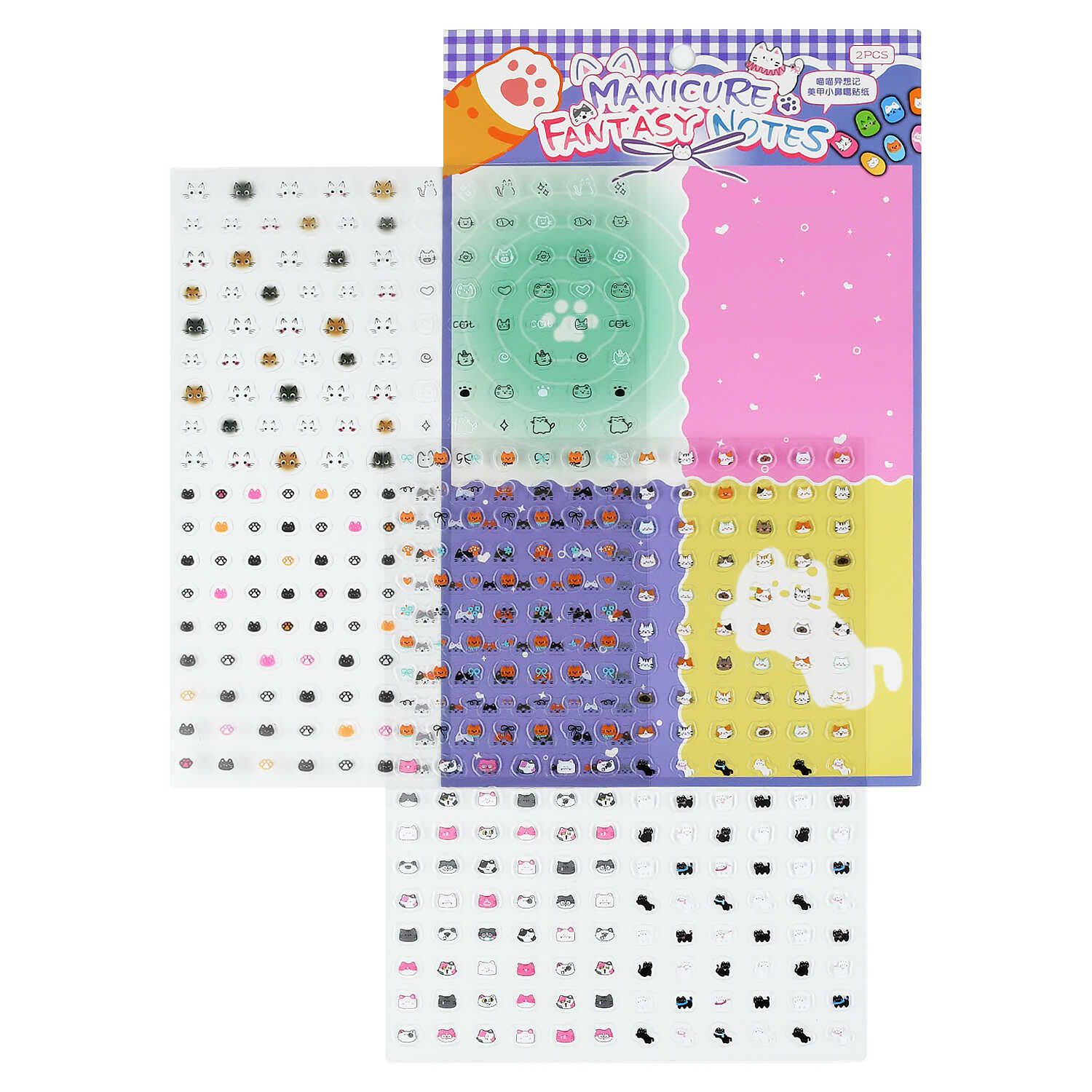 Наклейки для ногтей, 150х200 мм, арт. 73258 / 100 КОШАЧЬИ МЕЧТЫ ФИОЛЕТОВЫЙ (2 листа/-ов в наборе, размер листа: 150х200 мм; материал наклеек: ПЭТ; кол-во наклеек на листе: 240+; цвет: жёлтый, зелёный, розовый, фиолетовый; декор: полноцветная печать; индивидуальная упаковка: ПЭТ-пакет)