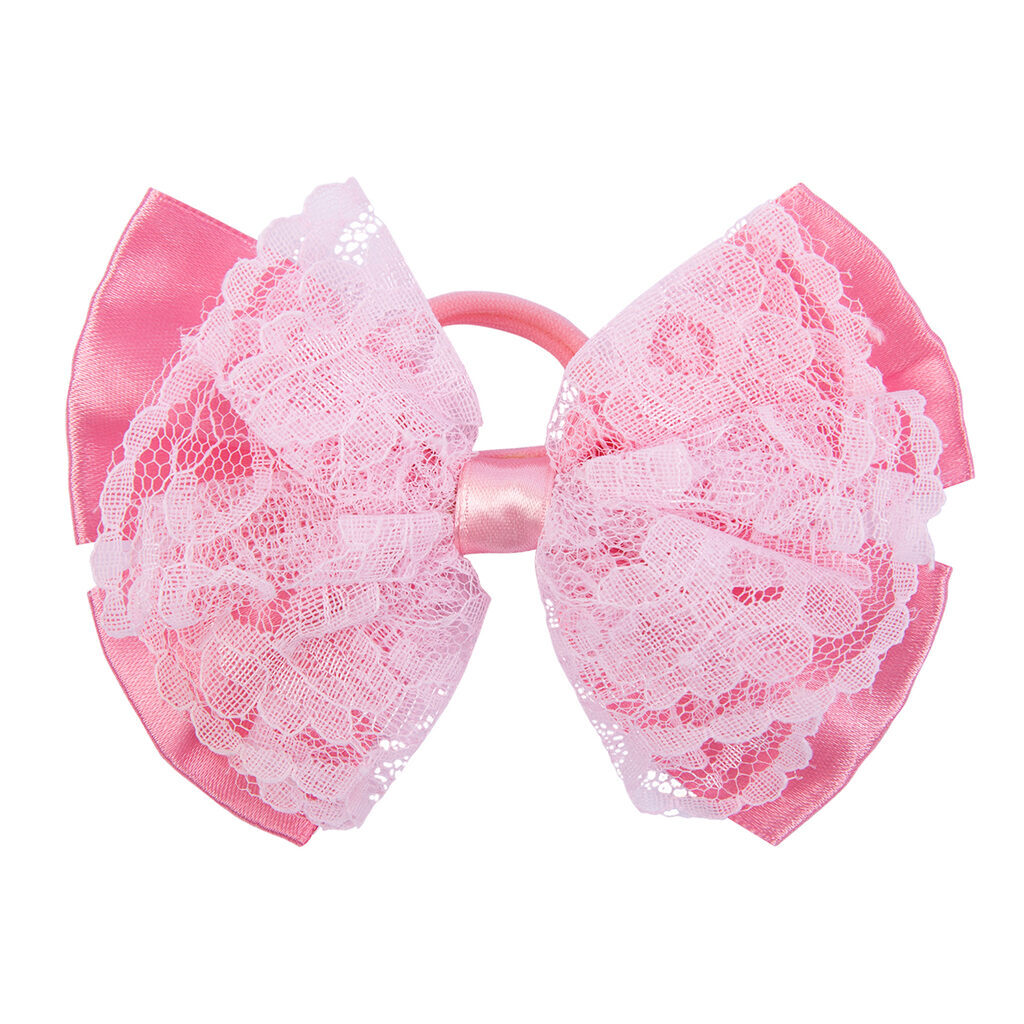Праздничный бант на резинке. Выполнен из кружева и ткани атласного переплетения. Примерная длина банта 14 см.
