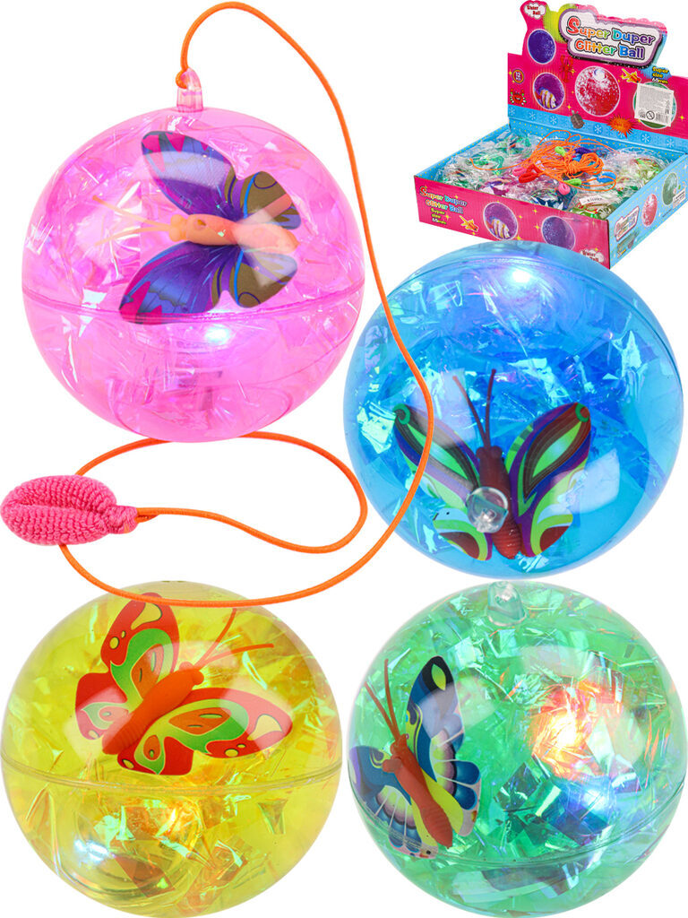 Мяч со светом с веревкой 6,5см "Бабочка" пищит, ассорти