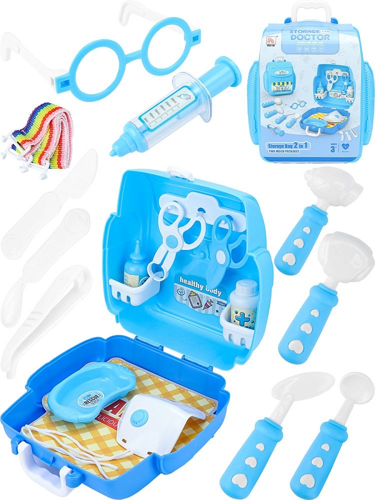 Игровой набор доктора 15 предметов "Скорая больница" в чемодане, синий