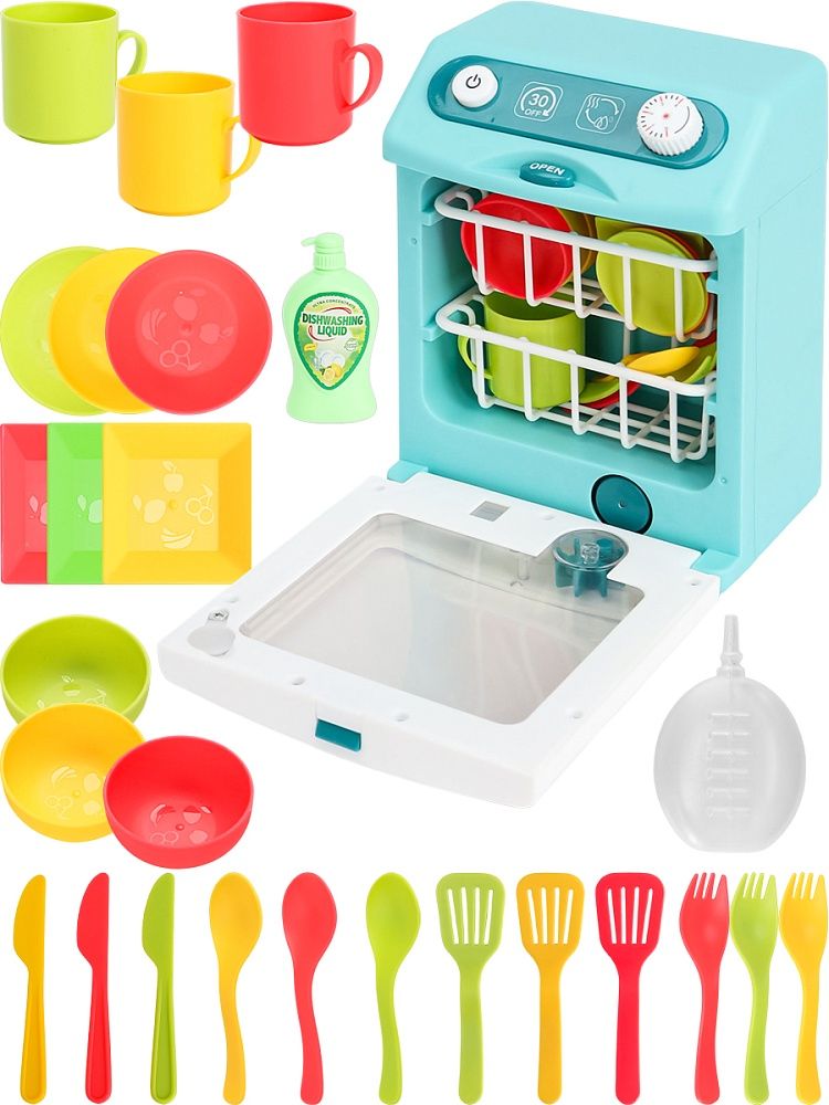 Игровой набор "Посудомоечная машина" Особенности: звук, свет, работает от батареек типа 3*AAA (не в комплекте), можно добавлять воду. Материал: пластик. В коробке.