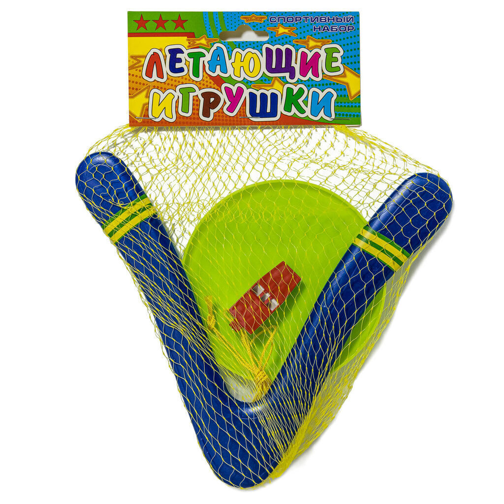 Набор игр. Летающая тарелка "Малая", Бумеранг "Фигурный", Свисток на веревке