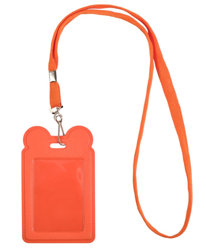 Бейдж 70*107мм вертик., с ушками, лента с карабином, оранжевый