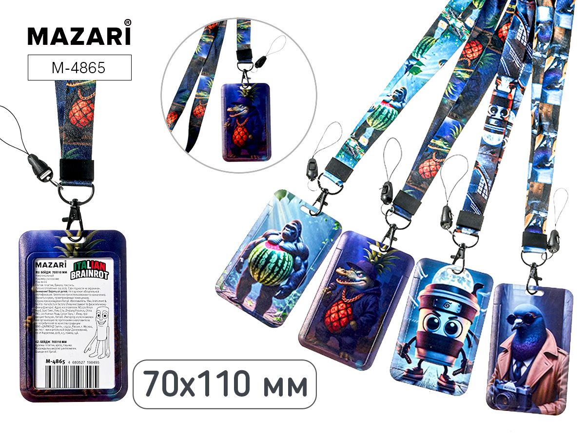 Бейдж 70*110 мм вертикальный "Итал. мем", на шнурке, 4 диз. в спайке