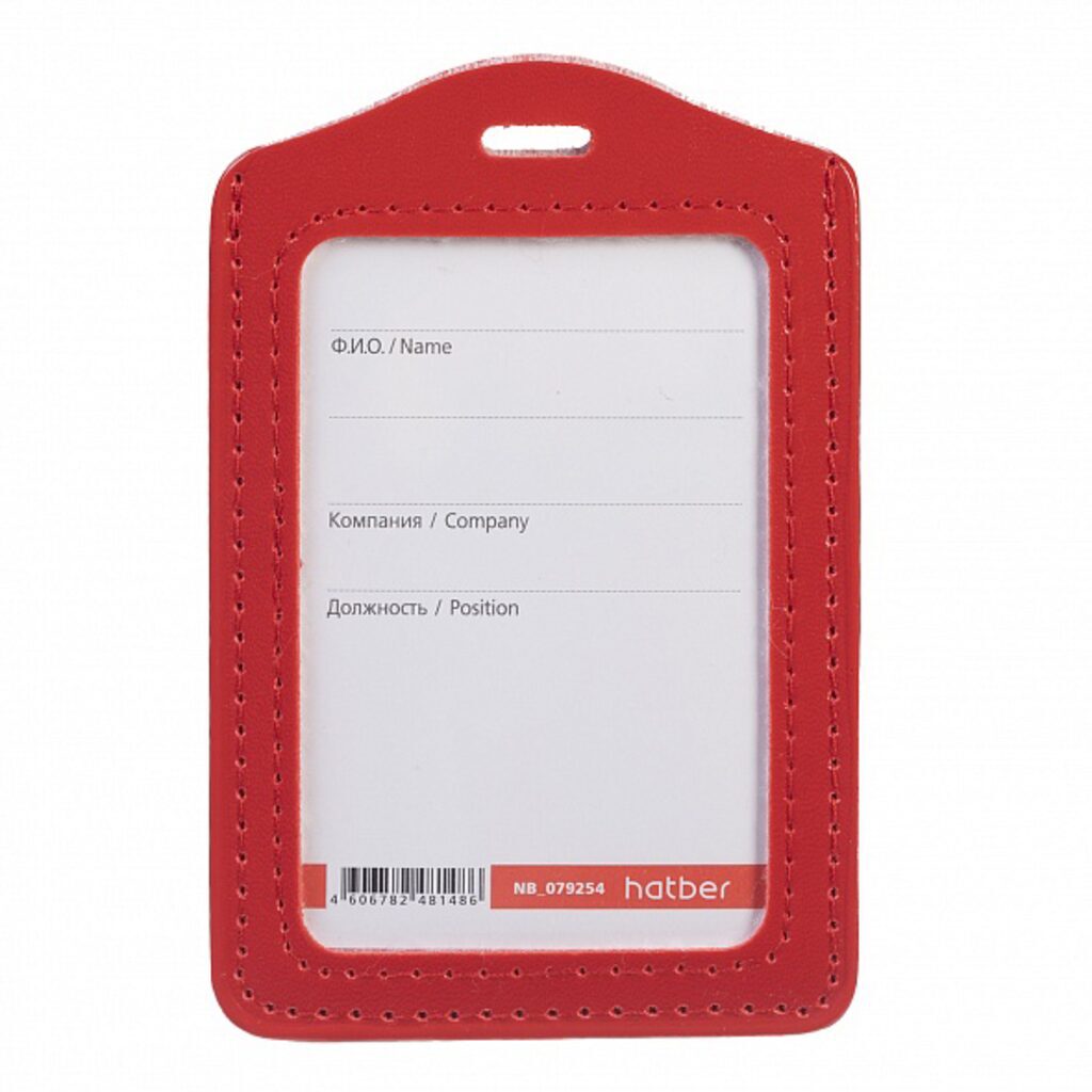 Бейдж 72*112 мм. экокожа, вертикальный, красный