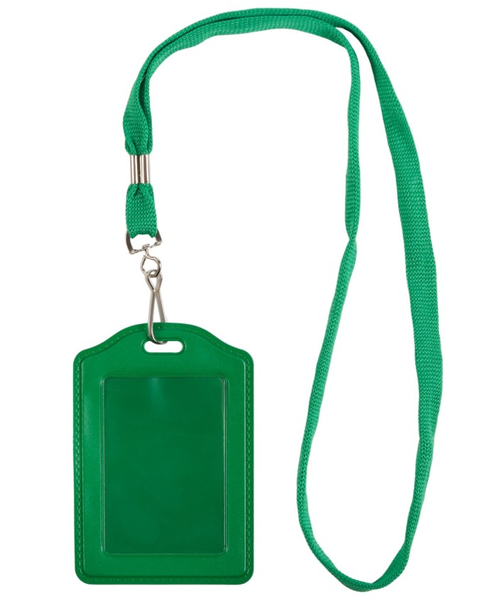 Бейдж 75*110мм вертик., ПВХ, лента с карабином, зеленый