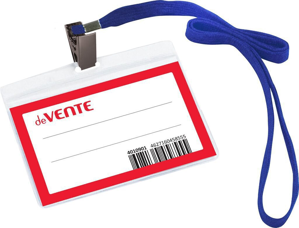 Бейдж горизонтальный, с бумажным вкладышем, размер 99*66мм, на ленте с клипом