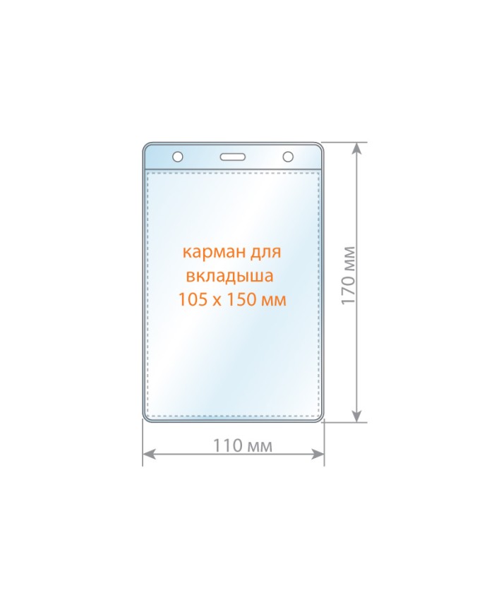 Карман для бейджа, вертикальный, 110*170мм с тремя отв.