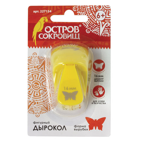 Дырокол фигурный "Бабочка", диаметр вырезной фигуры 16 мм, ОСТРОВ СОКРОВИЩ, 227154