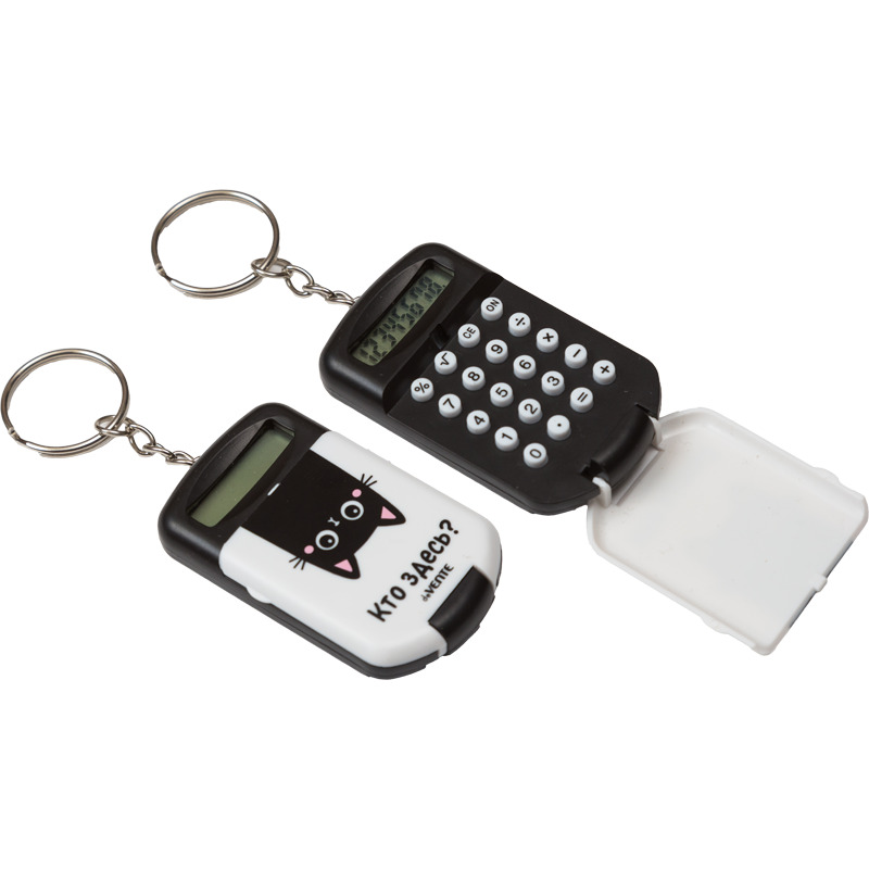 Калькулятор-брелок "deVENTE. Кто здесь?" 37x64x12 мм, 8 разрядный, автоматическое вычисление квадратного корня, процентов, с рисунком, в блистере с подвесом