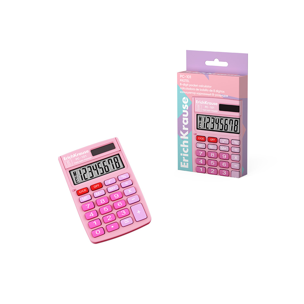 Калькулятор карманный 8-разрядов ErichKrause PC-101 Пастель, розовый (в коробке по 1 шт.)