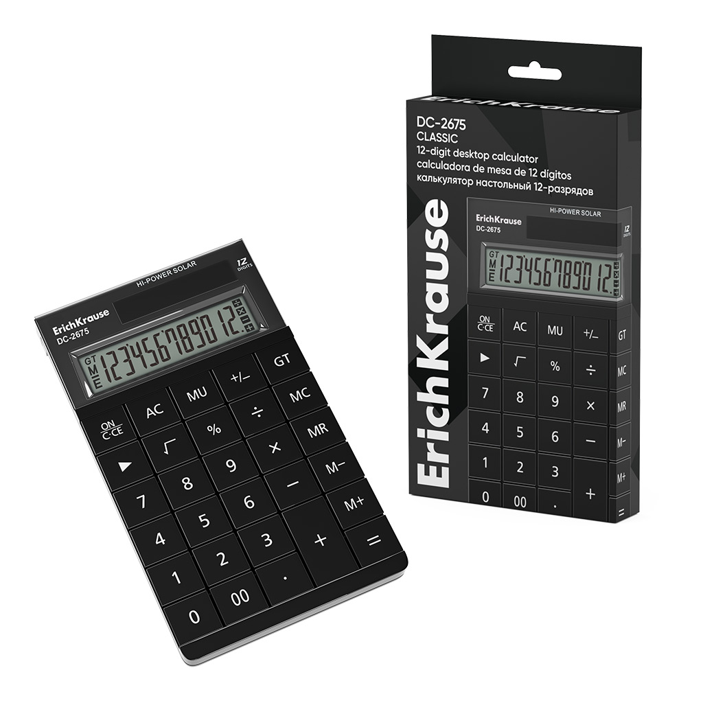 Калькулятор настольный 12-разрядов ErichKrause DC-2675 Классика, черный (в коробке по 1 шт.)