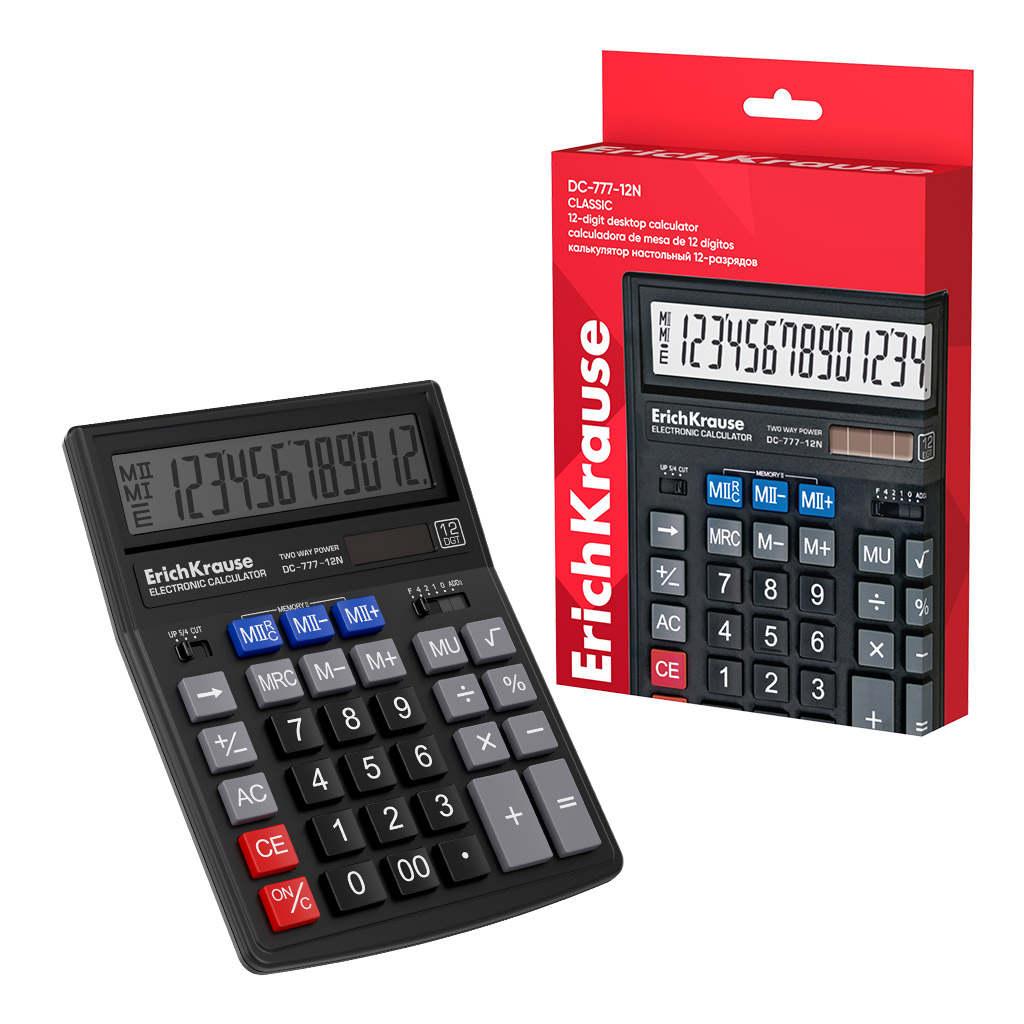Бухгалтерский калькулятор в пластиковом корпусе с 12-разрядным ЖК - дисплеем. Имеет двухуровневую память. Оптимальный набор вычислительных функций позволяет совершать основные математические операции, рассчитывать проценты, наценку, извлекать квадратный корень, суммировать произведенные операции и запоминать промежуточный результат. Удобная клавиатура снабжена кнопками двойного нуля и удаления последней отображаемой цифры. Наличие двух переключателей: режима округления и количества знаков после запятой. Для экономии энергии предусмотрены два источника питания: солнечная и алкалиновая батарея, а также функция автоматического выключения.