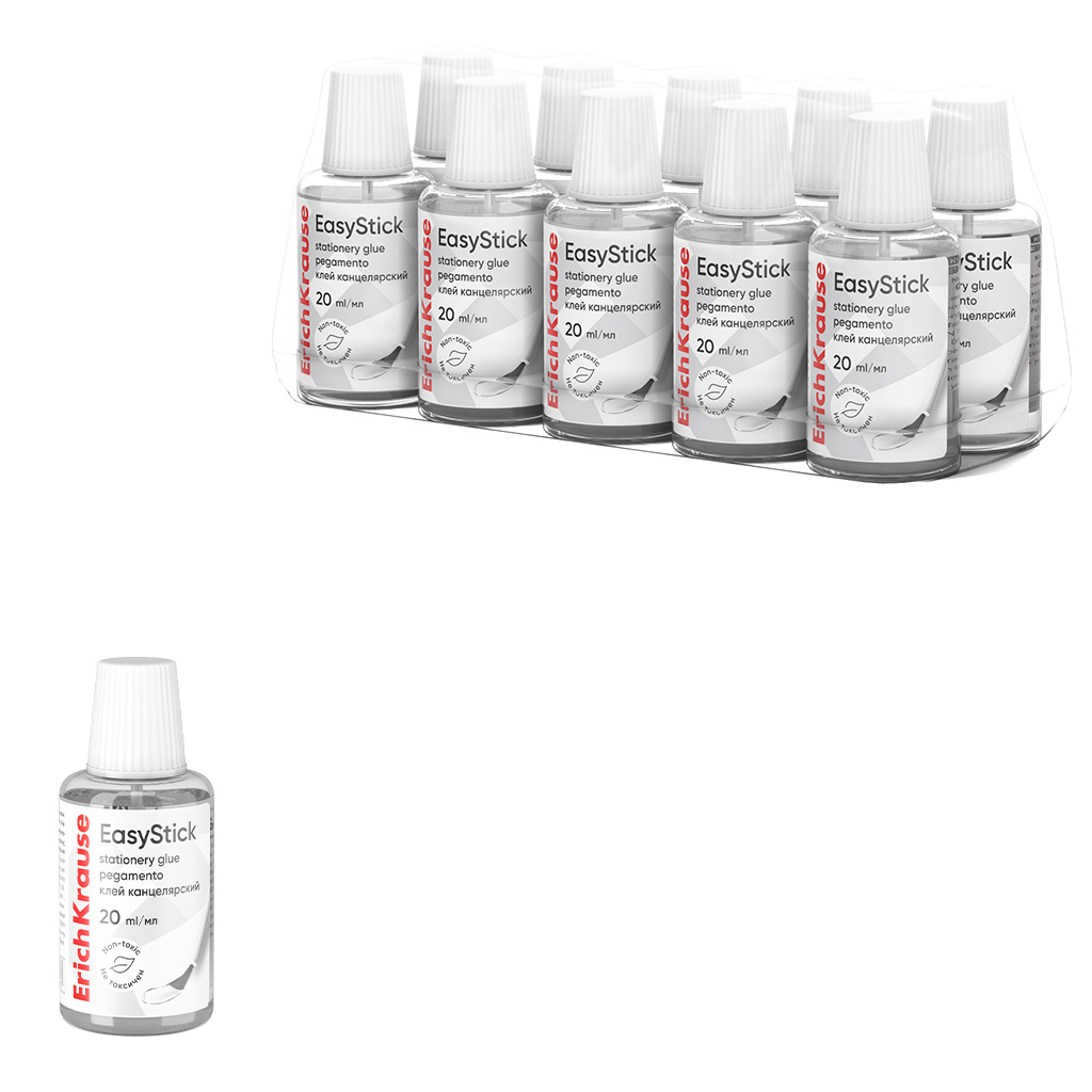 Клей канцелярский ErichKrause Лёгкое склеивание, с кисточкой, 20мл (в пластиковом поддоне по 10 шт.)