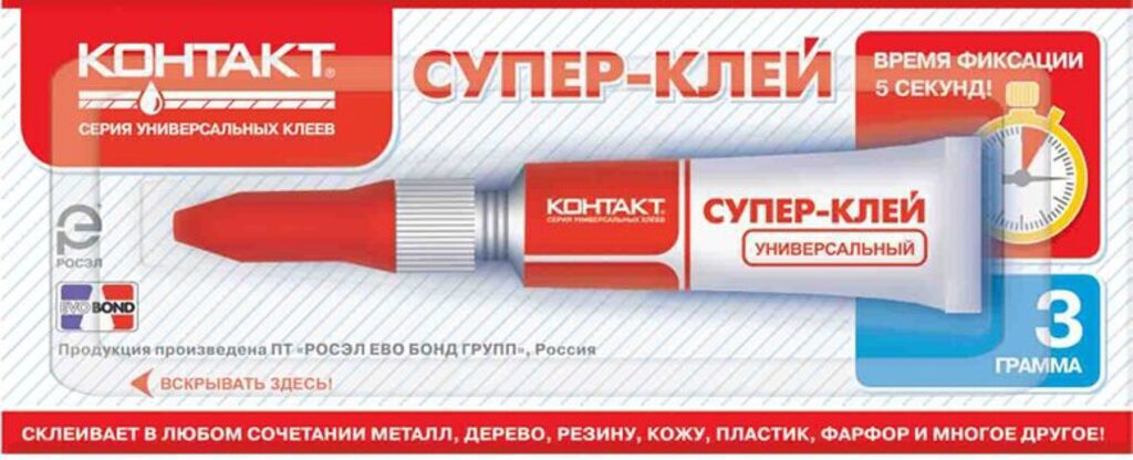Однокомпонентный моментальный клей для быстрого склеивания распространенных в быту материалов. Клеевое соединение устойчиво к органическим растворителям. Прочный клеевой шов. Предназначен для быстрого склеивания распространенных в быту материалов. Быстро и надежно соединяет склеиваемые поверхности. Время отверждения 520 секунд, функциональная  прочность  клеевого  соединения достигается за 1015 минут. Преимущества -Эластичный клеевой шов, Повышенная влагостойкость, Отсутствие резкого агрессивного запаха, Сохранение прочностных характеристик при длительном хранении, Способность не склеивать пальцы мгновенно при попадании на них клея.
