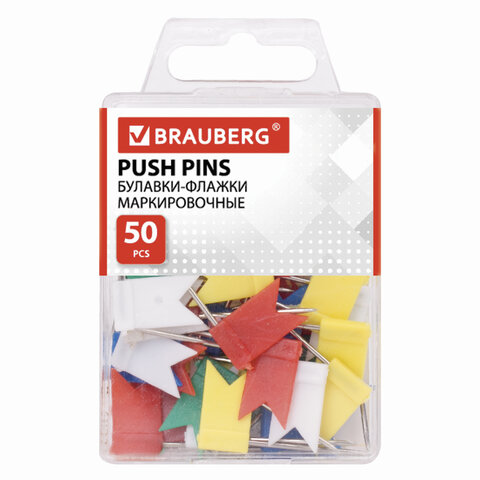 Булавки-флажки маркировочные BRAUBERG, цветные, 50 шт., пластиковая коробка, европодвес, 221537