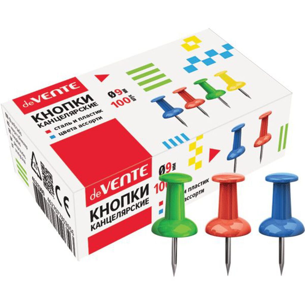 Кнопки силовые цветные 100 шт.в картонной коробочке, материал сталь и пластик. Цвета в ассртименте. Предназначены для использования на мягких и полутвердых поверхностях: бумага, картон, пробка, текстиль.