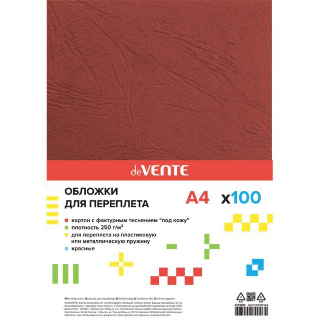 Обложка для переплета картонная deVENTE "Delta" красная, картон, А4, 230г/м2, 100л