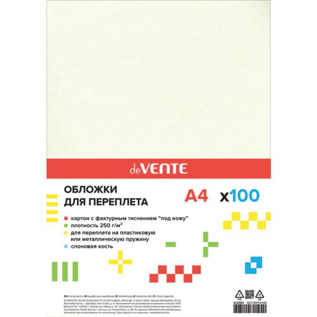 Обложка для переплета картонная deVENTE "Delta" слон. кость, картон, А4, 230г/м2, 100л