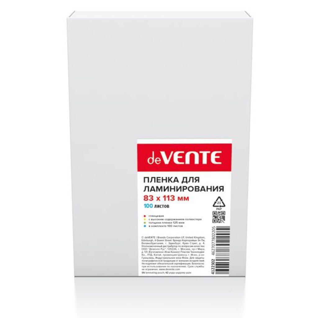 Пленка для ламинирования "deVENTE" 83x113 мм, толщина 125 мкм, 100 л