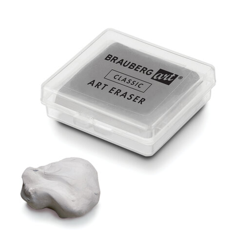 Ластик-клячка художественный, серый, в футляре, 40x36x10 мм, BRAUBERG ART "CLASSIC", 271154