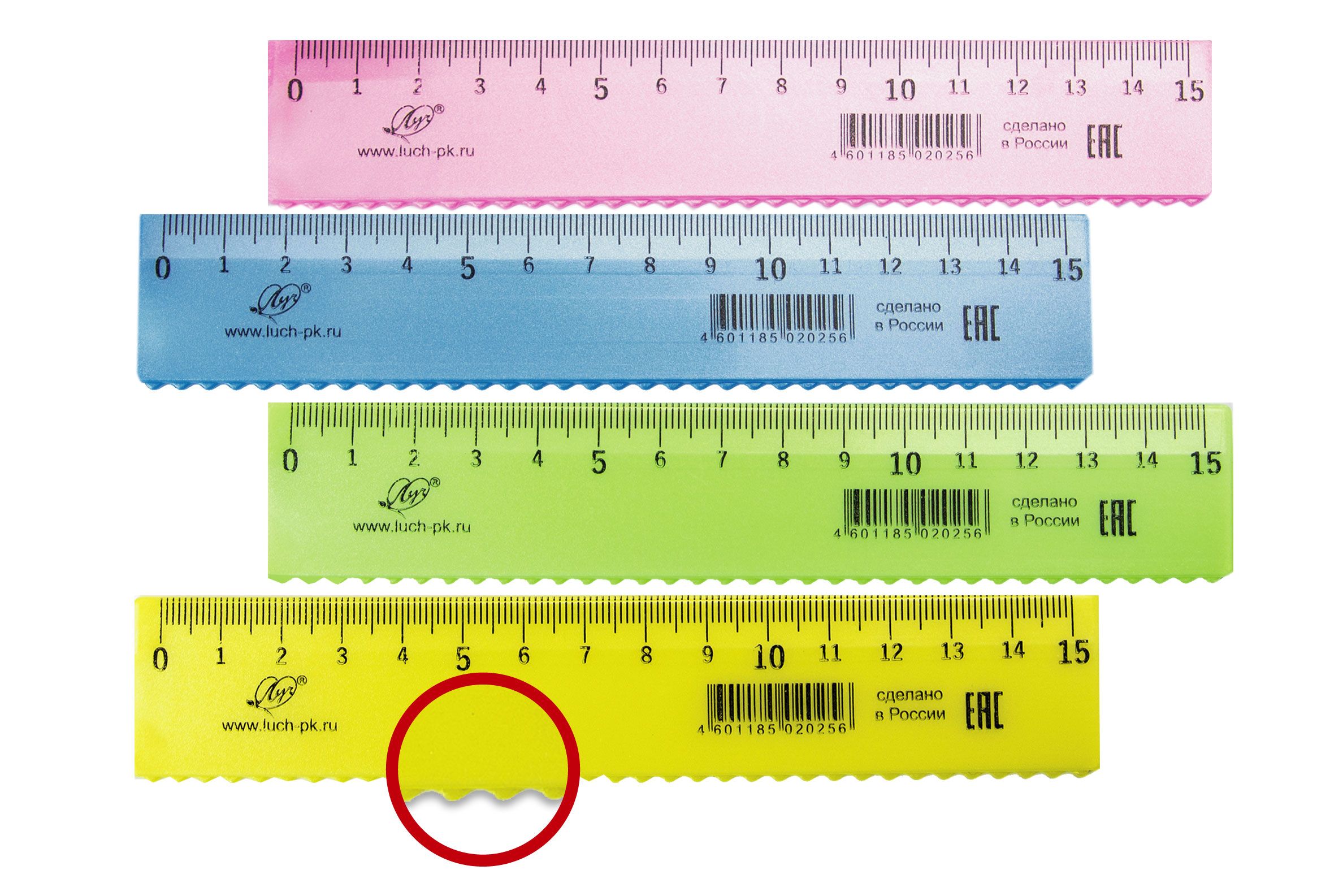 Непрозрачная линейка из высококачественного пластика. Четкая печать односторонней шкалы. Наличие волнистого края для подчеркивания выделяемых слов и словосочетаний. Длина разметки 15см.
