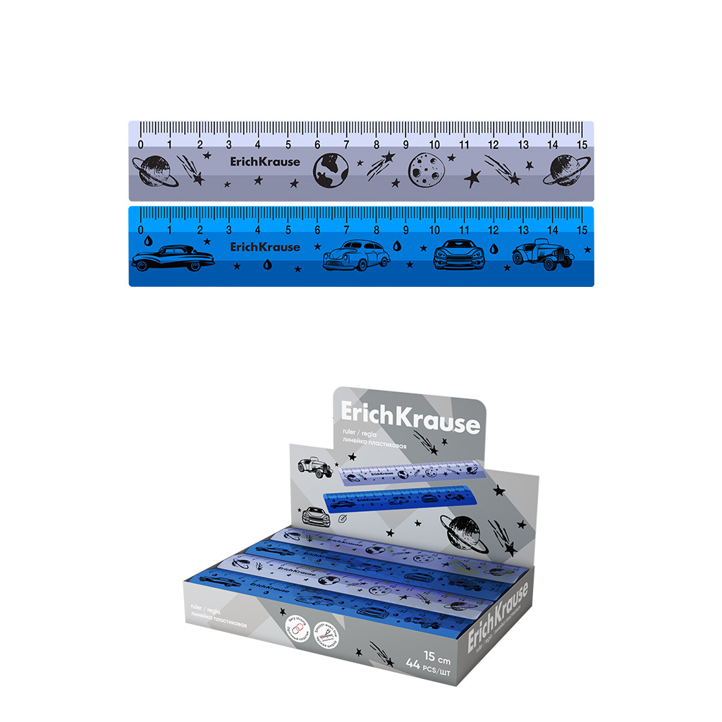 Линейка пластиковая ErichKrause 15см, ассорти для мальчиков (в коробке-дисплее по 44 шт)