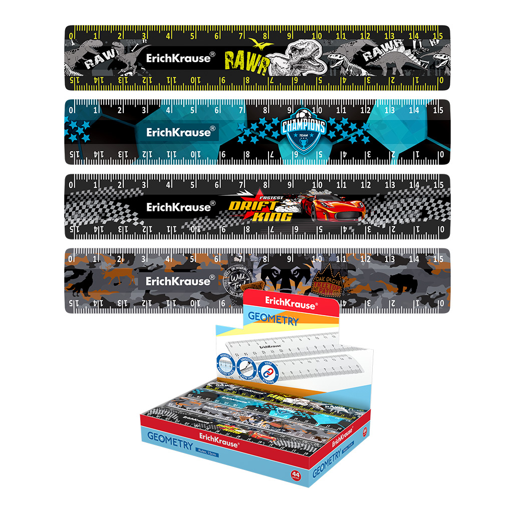 Линейка пластиковая ErichKrause, 15см, ассорти из 4 дизайнов, в коробке-дисплее (boy)