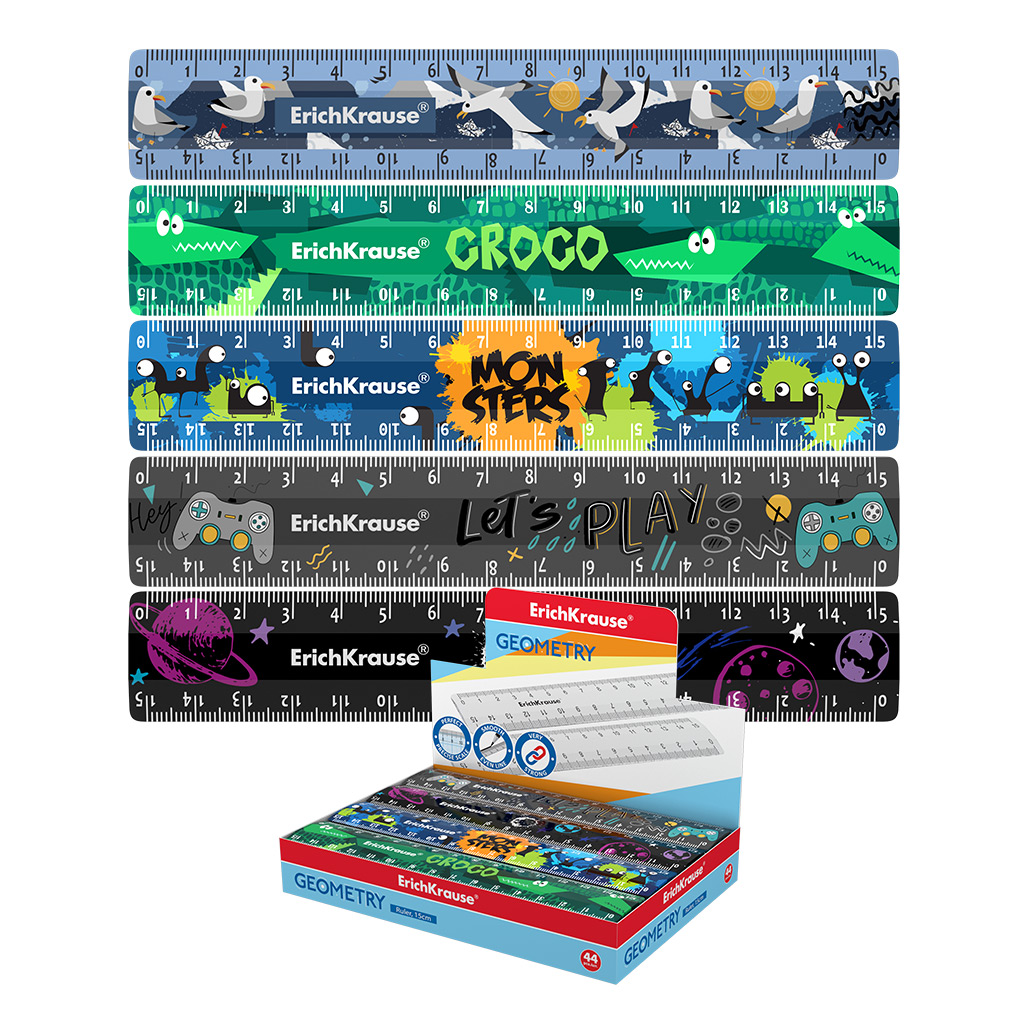 Линейка пластиковая ErichKrause, 15см, ассорти из 5 дизайнов, в коробке-дисплее (universal)