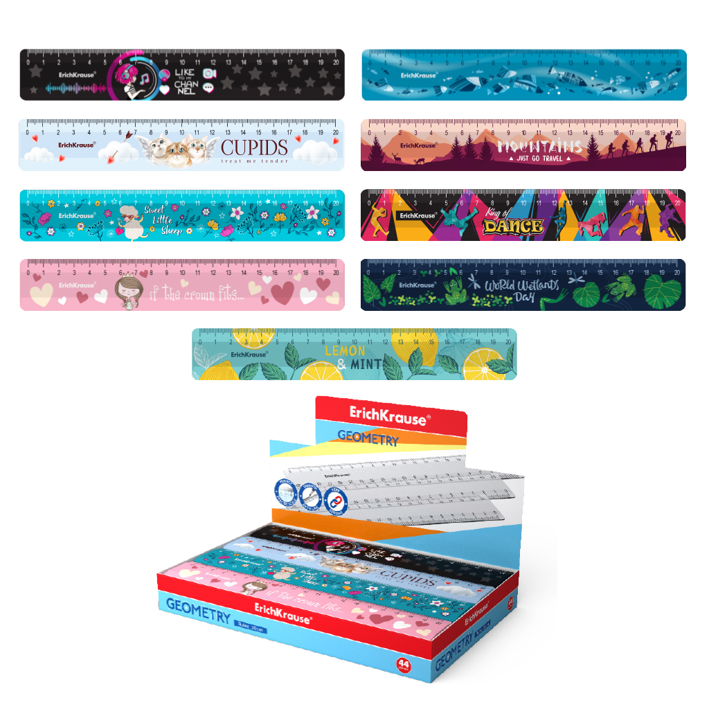 Линейка пластиковая ErichKrause 20см, ассорти для девочек (в коробке-дисплее по 44 шт)