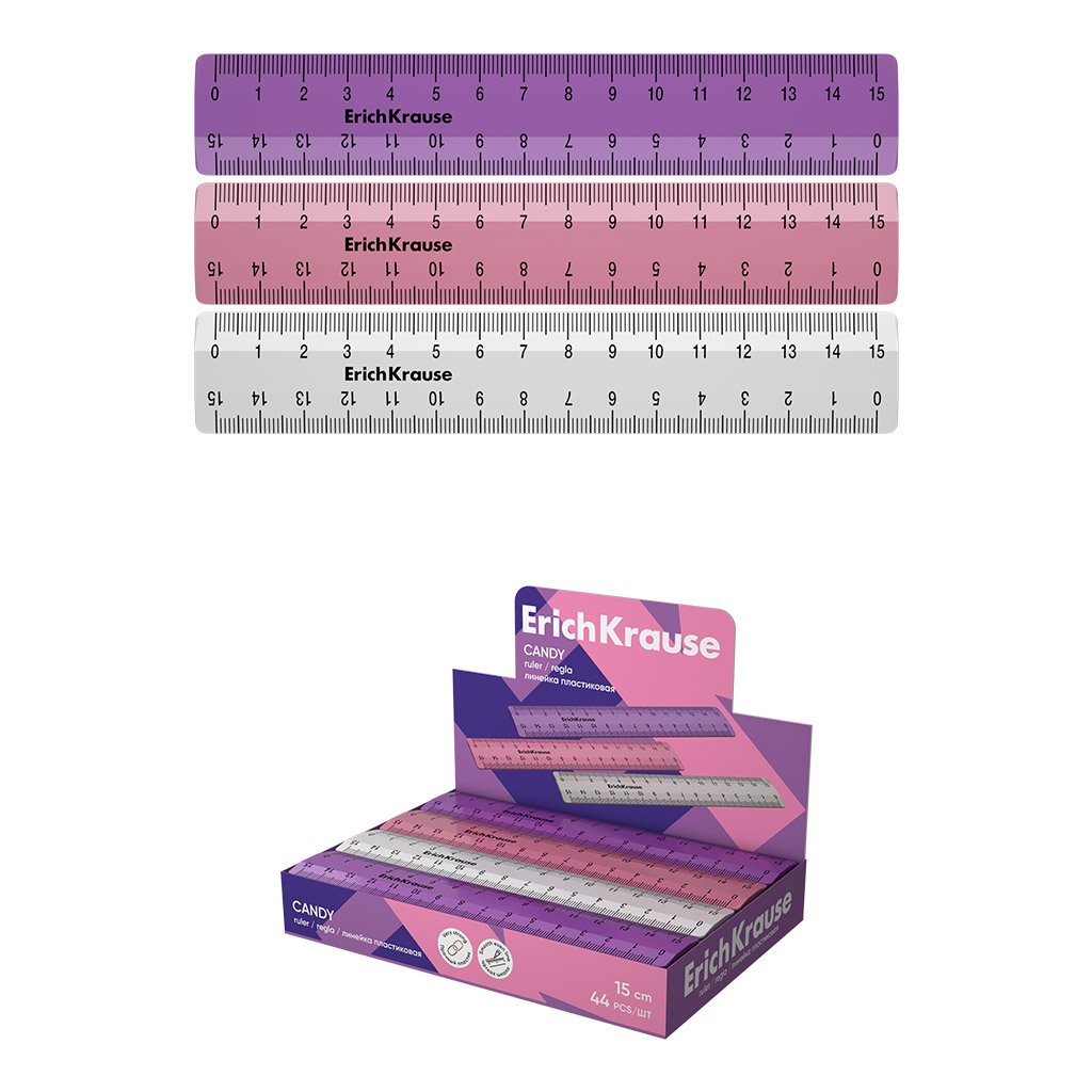 Линейка пластиковая ErichKrause Карамель, 15см, ассорти (в коробке-дисплее по 44 шт)