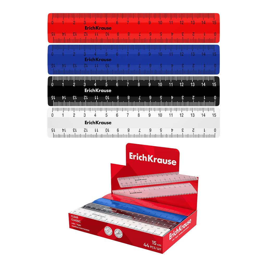 Линейка пластиковая ErichKrause Классика, 15см, ассорти (в коробке-дисплее по 44 шт)