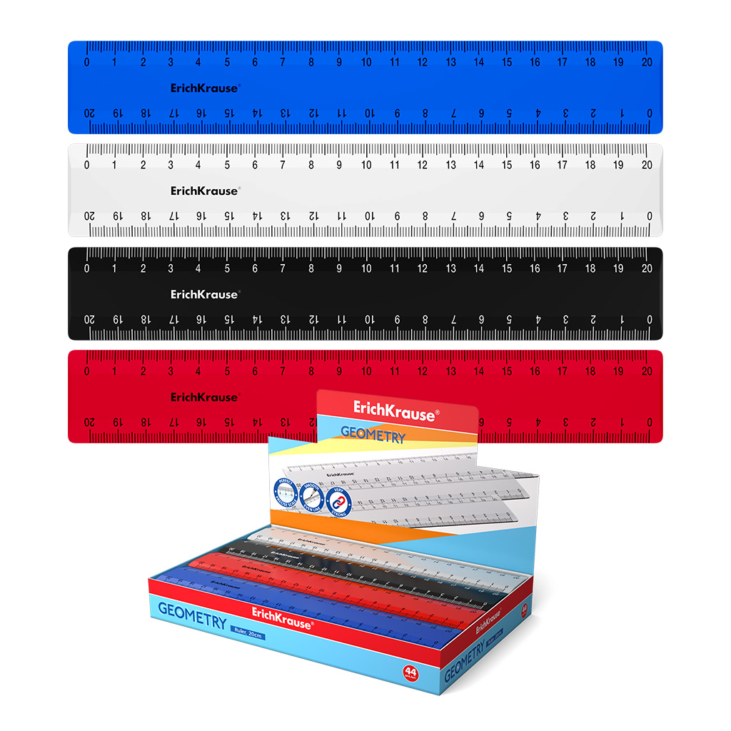 Линейка пластиковая ErichKrause Классика, 20см, ассорти (в коробке-дисплее по 44 шт)