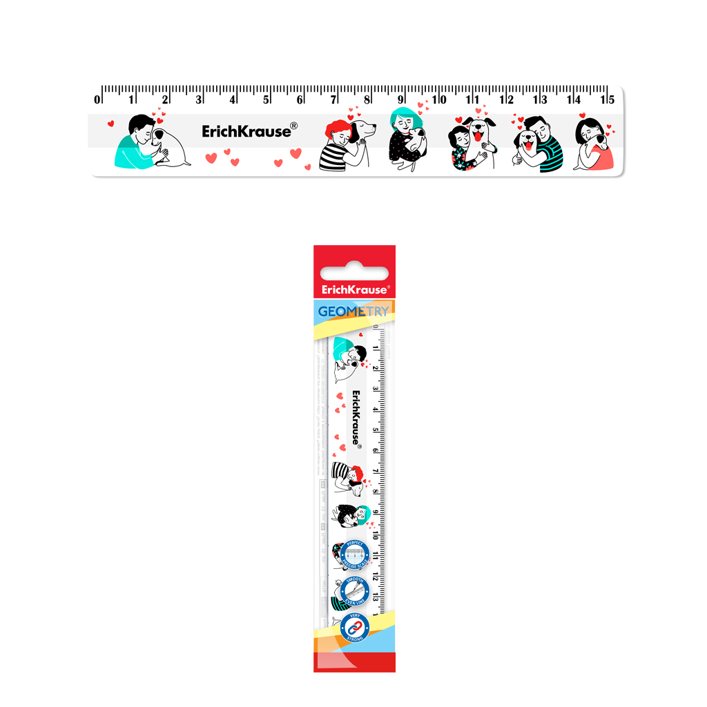 Линейка пластиковая ErichKrause Пушистые друзья, 15см, в пакете
