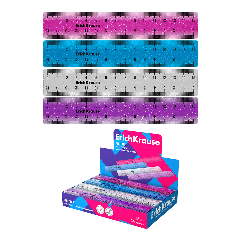 Линейка пластиковая ErichKrause Блёстки, 15см, ассорти (в коробке-дисплее по 44 шт)