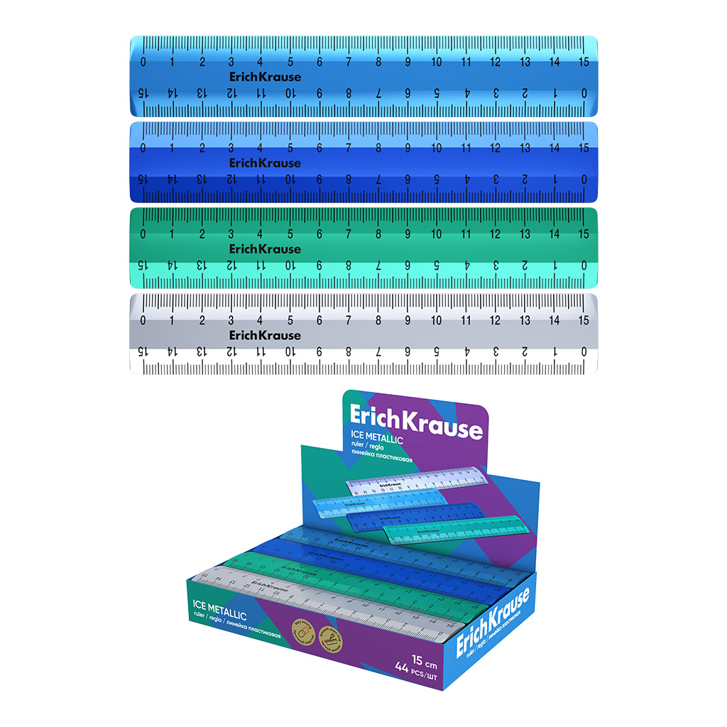 Линейка пластиковая ErichKrause Ледяной металл, 15см, ассорти (в коробке-дисплее по 44 шт)