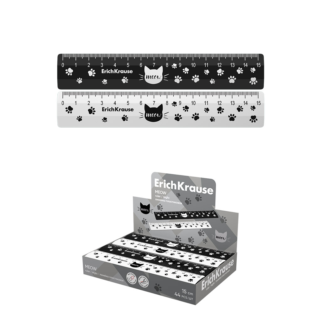 Линейка пластиковая ErichKrause Мяу, 15см, ассорти (в коробке-дисплее по 44 шт)