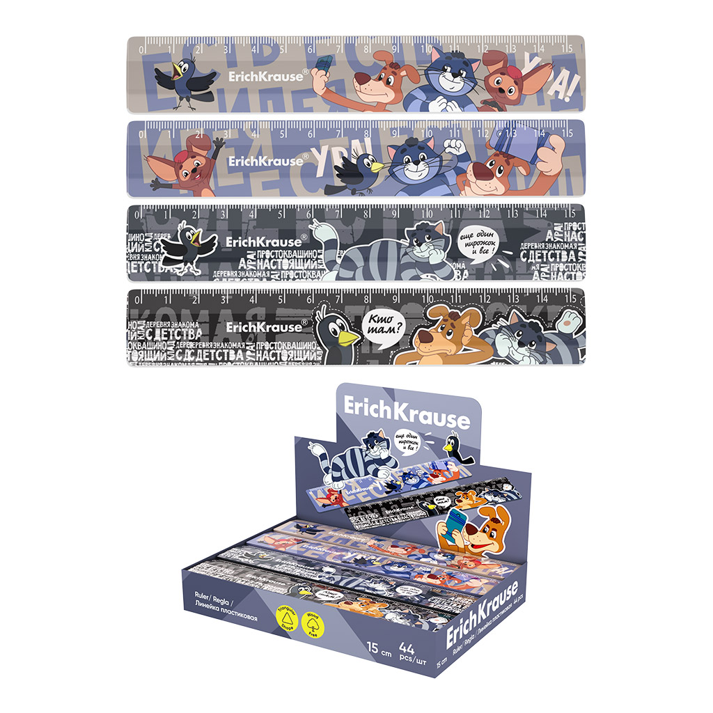 Линейка пластиковая ErichKrause Простоквашино, 15см, ассорти (в коробке-дисплее по 44 шт)