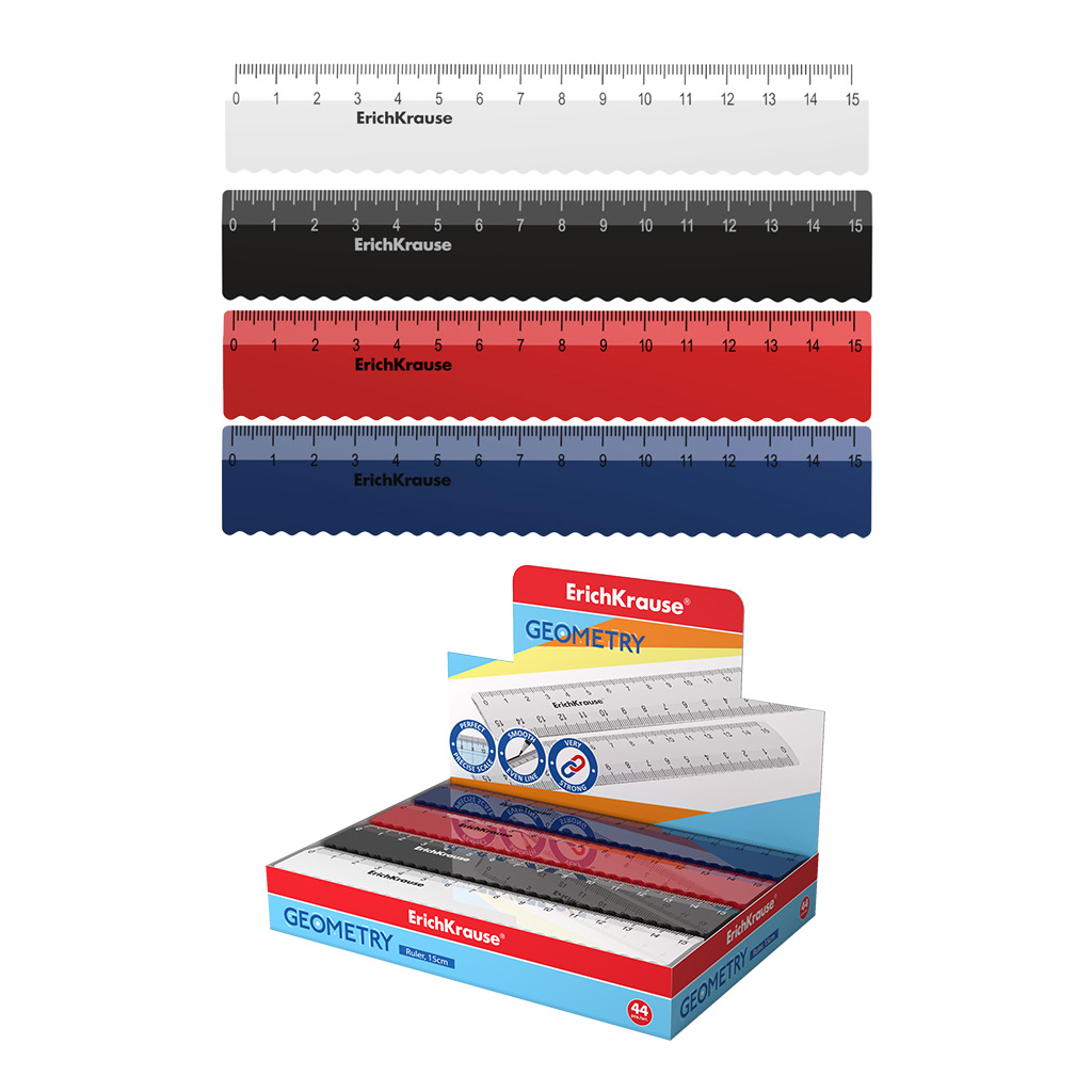 Линейка с волнистым краем пластиковая ErichKrause Классика, 15см, ассорти (в коробке-дисплее по 44 шт)