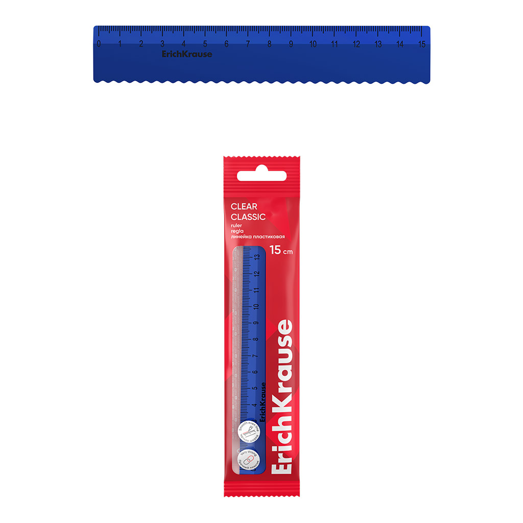 Линейка с волнистым краем пластиковая ErichKrause Классика, 15см, пакет, синий (в пакете по 20 шт)