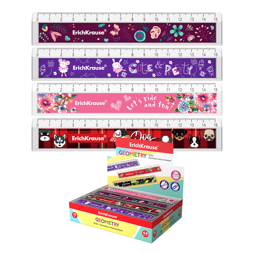 Линейка с выемкой пластиковая ErichKrause 15см, ассорти для девочек (в коробке-дисплее по 44 шт)