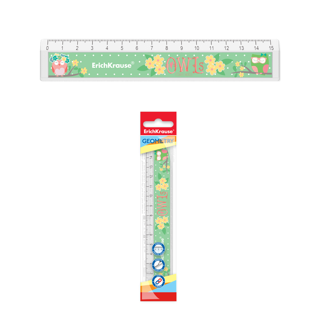 Линейка с выемкой пластиковая ErichKrause Цветочная сова, 15см, в пакете