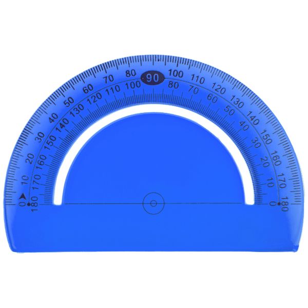 Транспортир 180 градусов 12см, с чёткой печатной миллиметровой шкалой. Гладкая глянцевая поверхность, гибкий пластик. Цвет: прозрачный синий. Штрих-код на единице изделия. Индивидуальная упаковка с европодвесом.