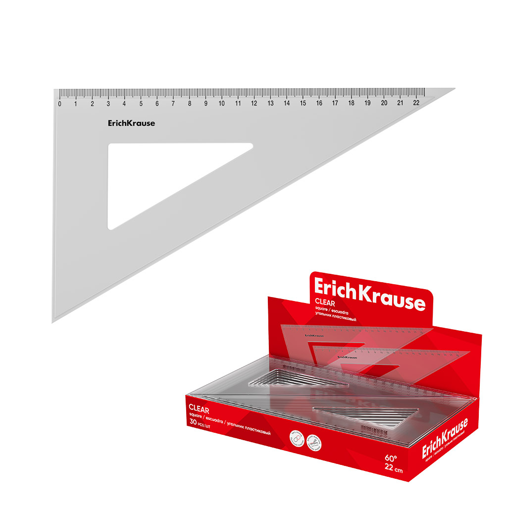 Угольник пластиковый ErichKrause Прозрачность, 60°/22см, прозрачный (в коробке-дисплее по 30 шт)
