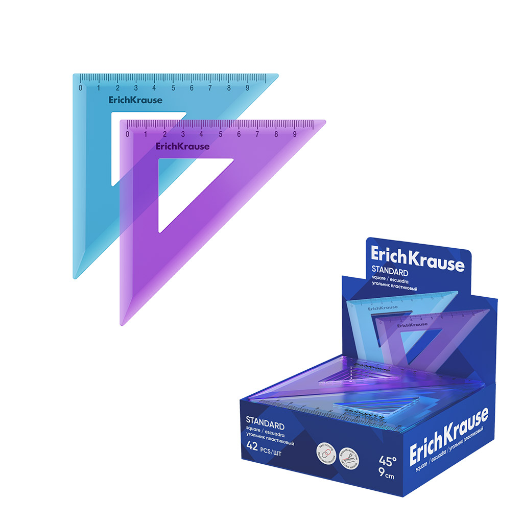Угольник пластиковый ErichKrause 45°/9см, ассорти (в коробке-дисплее по 42 шт)