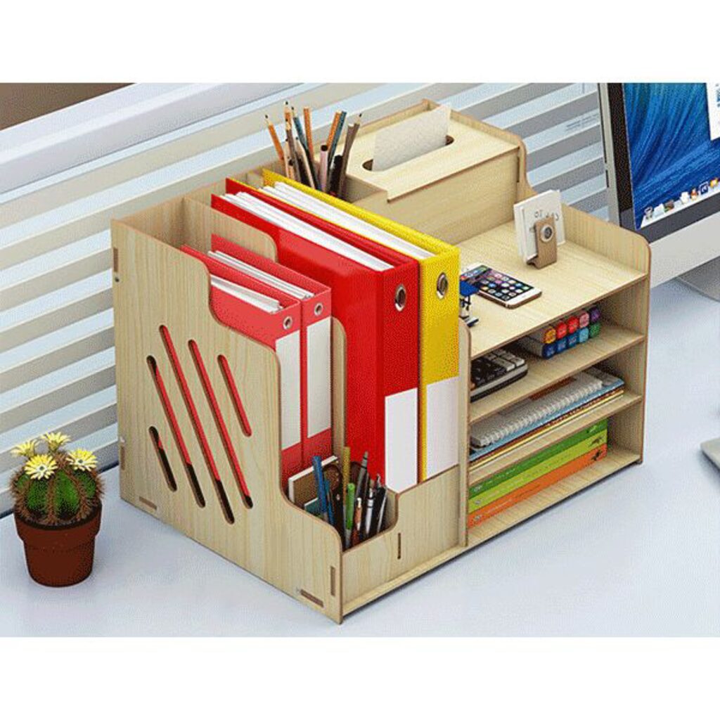 Органайзер для канцелярских принадлежностей "deVENTE. Mega" настольный, 37x28,1x27 см, материал - МДФ, цвет и фактура березы, без наполнения, в картонной коробке