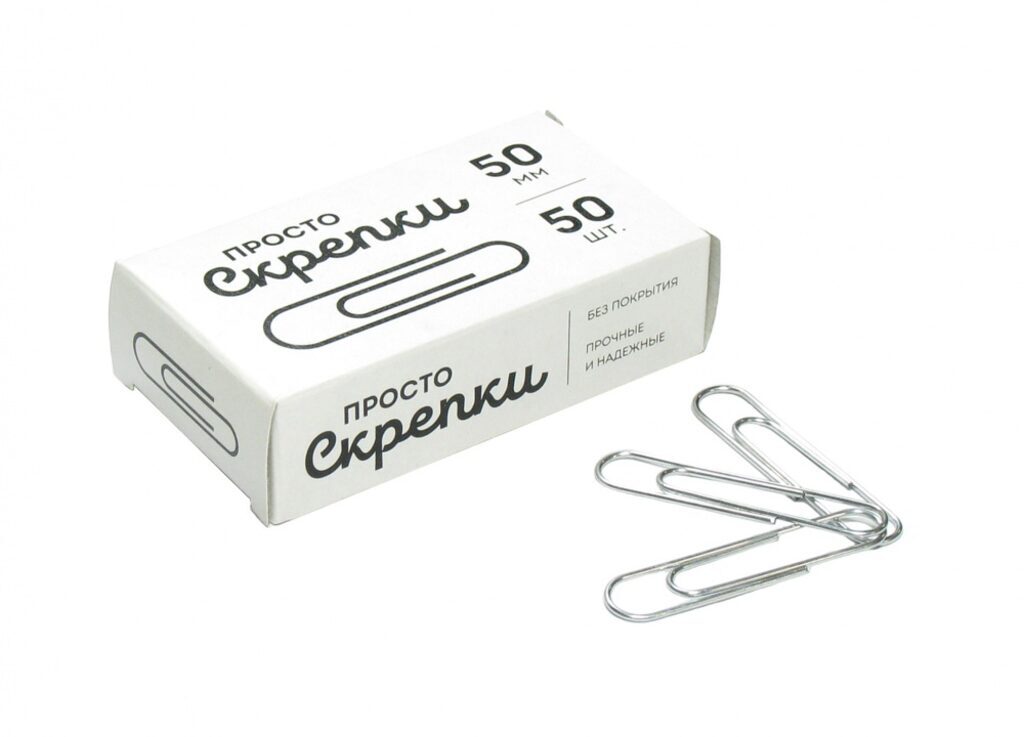 Металлические скрепки без покрытия надежно скрепляют документы, не повреждая бумагу. Скрепки имеют размер 50 мм. В картонной упаковке 50 скрепок.