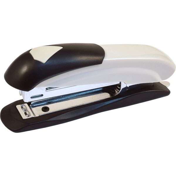 Степлер "Attomex" 10 (мощность 12 листов, глубина скрепления 55 мм) пластиковый, со встроенным металлическим антистеплером, в картонной коробке, серо-черный
